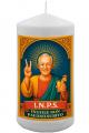 Candela dal diametro di cm.8 cm- Altezza cm.15 - Peso gr.650 avvolta da un papiro di cm.14 x 38, che contiene l'esilarante “Ode al Pensionato” o “Ode alla Pensionata” .